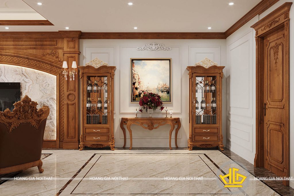 Nối tiếp không gian tiếp khách là một không sinh hoạt chung dành riêng cho gia đình. Anh Minh – Anh muốn có thêm không gian để anh cùng các con hay bạn bè có thể thoải mái ngồi chia sẻ, tâm sự mọi chuyện sau một ngày vất vả. Tại không gian này Hoàng Gia vẫn thiết kế theo hướng tân cổ điển, bố trí hai tủ trưng bày rượu, ở giữa được trang trí thêm một bức tranh và một bàn tân cổ điển hài hòa với tổng thể căn nhà.