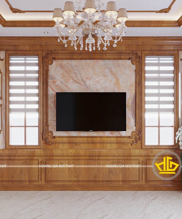 Đầu tiền là kệ tivi làm say đắm lòng người ngay từ cái nhìn đầu tiên được thiết kế hoàn hảo có chọn lọc giữa phong cách cổ điển và hiện đại. Những đường phào chỉ mềm mại kết hợp cùng hoa văn tinh xảo, họa tiết chạm trổ tỉ mỉ, đơn giả đã mang tới không gian nội thất phòng khách thêm đẳng cấp.