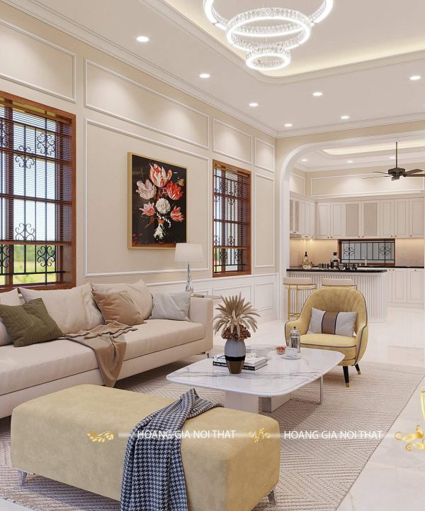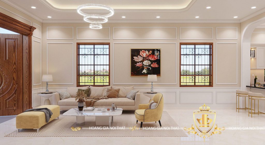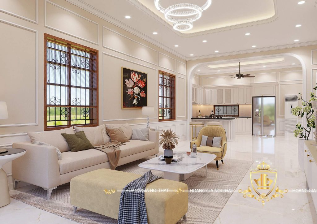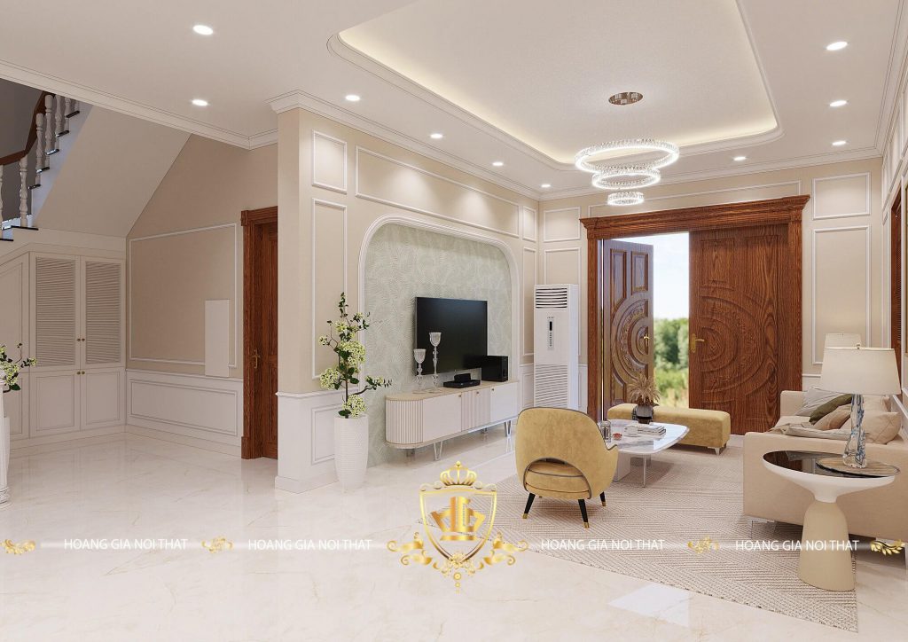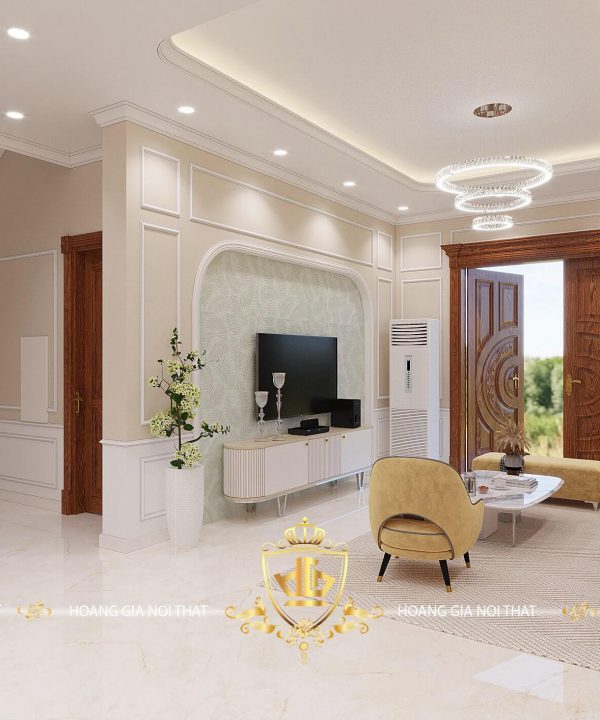 Phòng khách không chỉ là không gian sinh hoạt chung của các thành viên trong gia đình, mà chính nơi này dùng để tiếp đón bạn bè và người thân tới thăm. Vì thế, không gian phòng khách được xem là bộ mặt của căn nhà cũng như của gia chủ, đặc biệt luôn được chú trọng trong khâu lựa chọn và bày trí nội thất bên trong. Nội thất Hoàng Gia xin được chia sẻ mẫu phòng khách ấn tượng của một khách hàng mà chúng tôi đã thiết kế sau đây.