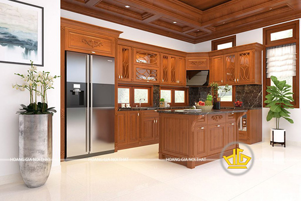 Sản phẩm tủ bếp gỗ tự nhiên được chế tác từ gỗ lát